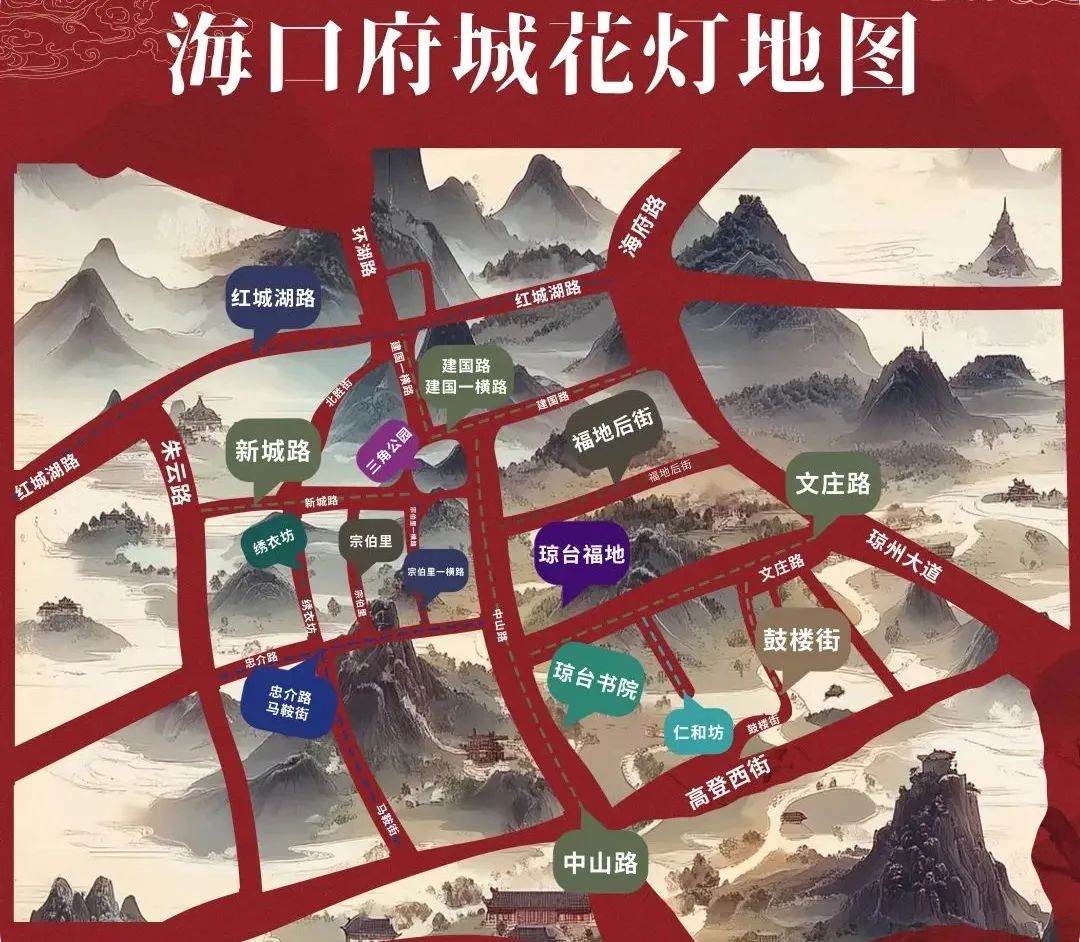 路线:府城街道办—新城路—朱云路—高登西街—中山北路—文庄路(工人文化宫路段)—琼台福地—三角公园—府城街道办