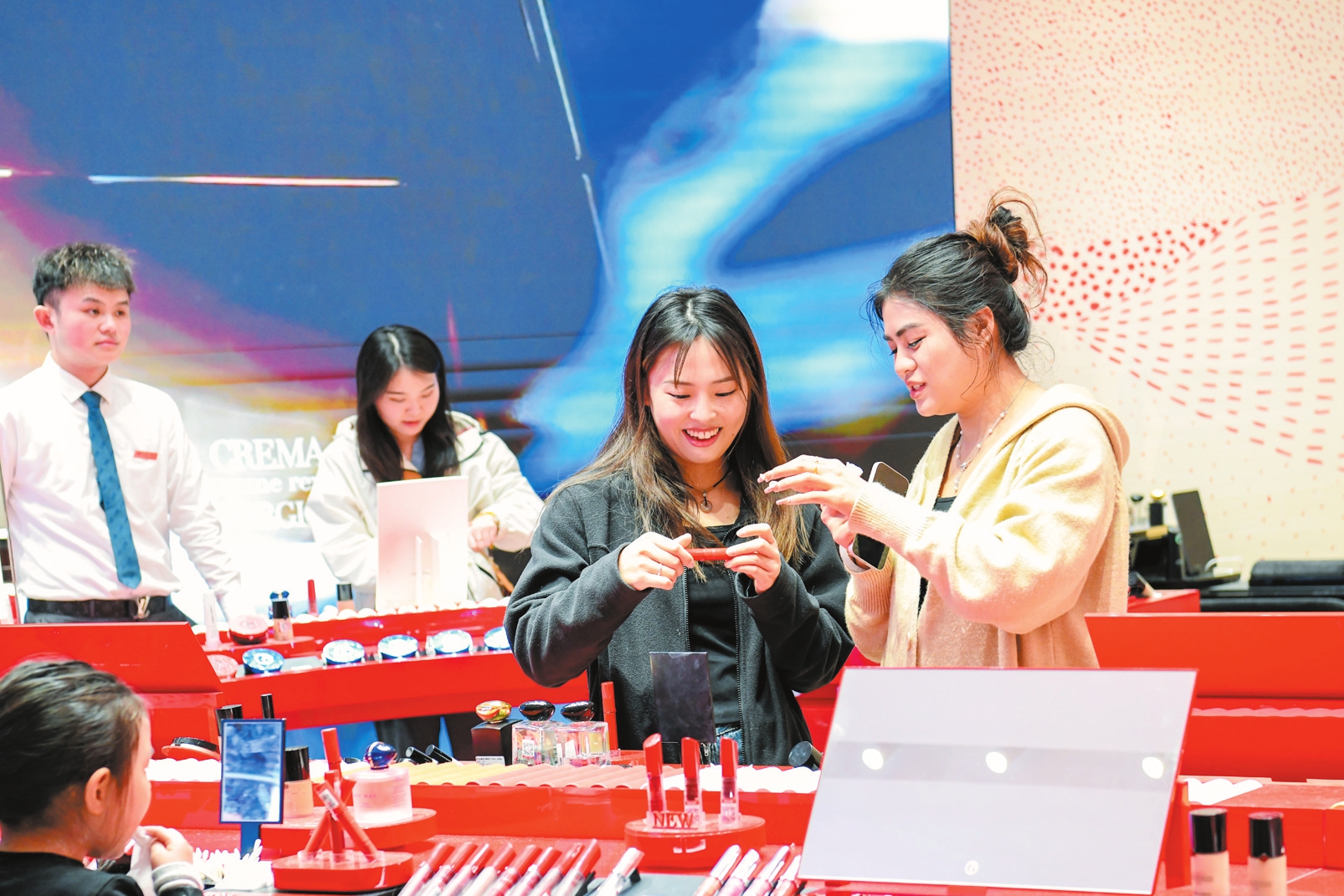 消费者在cdf海口国际免税城挑选商品。 本报记者 苏弼坤 摄