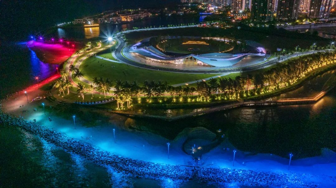 天空之山这座融合自然与设计的观景台,白天是极简几何美学,夜晚则化身灯光秀舞台。周末傍晚,登上“山顶”可360°俯瞰海口湾夜景,随手一拍即成“网红同款”。你也可以走进内部的书店、咖啡馆,在书香与咖啡香中享受悠闲时光。