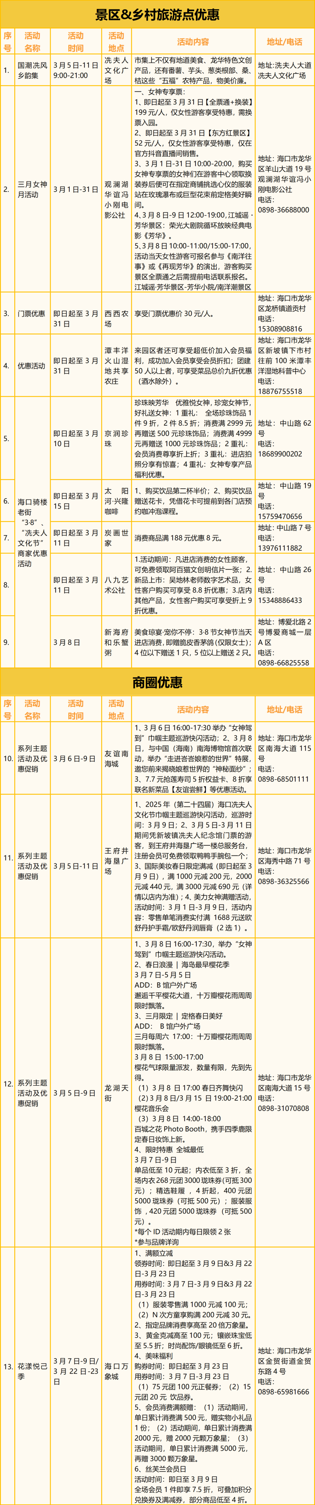 当“三八女神节”遇上冼夫人文化节,龙华区各景区、乡村旅游点以及商圈,也推出了系列主题活动及优惠促销,让你在这个特别的日子里独享宠爱,享受自然、文化和乐趣。