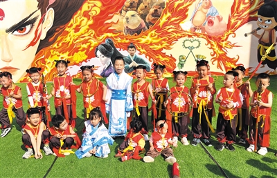 在现场看到,“小哪吒”们活力满满,朝气蓬勃。大三班的袁劭宗小朋友兴奋地向记者分享:“看了电影就特别喜欢哪吒,没想到现实里也能看到这么酷的哪吒,今天简直太高兴啦!”