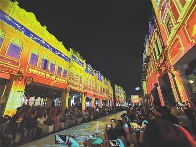 “选择入住骑楼老街的民宿,就是想深入感受这里的历史和文化,恰巧遇上文化周开幕式演出,真是让我对这里刮目相看,没想到这条街道能变成‘幕布’和‘秀场’,太漂亮了!”四川游客杨芸琴的惊喜之情溢于言表。