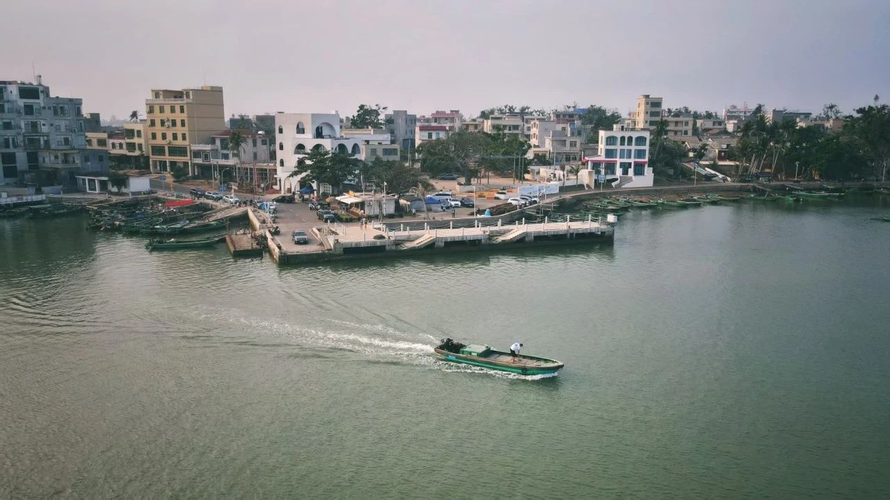 彩绘台阶、百年古榕树、寓意好运的蚝壳墙......在这个滨海小码头,各式各样的打卡点颇具特色。沿海漫步道的尽头处,是一座红白相间的小灯塔——渡口灯塔。