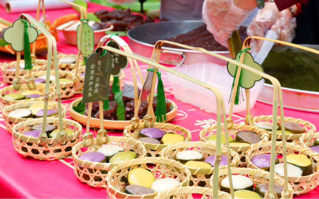 赏民俗、看非遗、品美食,认识一个更有韵味的龙华。3月11日,在骑楼老街得胜沙路冼夫人纪念馆门前,处处洋溢着欢声笑语,一场别开生面的“长桌宴”活动热闹举行。长桌整齐排列,桌上摆满了琳琅满目的海南本地特色美食,有热气腾腾的碱水馍、糯米丸子、斑斓糕、糖水面等,软糯香甜,香气四溢。