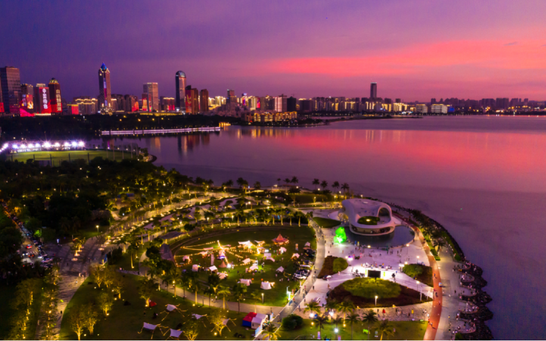 骑在椰风海韵、绿意盎然的海口湾绿道上,尽情享受着这座热带滨海城市的浪漫与惬意。如果你恰巧在日落时分,骑到云洞图书馆,吹一吹海风,看一场绝美的日落,“远方”的美好就在眼前。不妨停下来拍一张照吧!这一瞬的美,是不需要加滤镜的。
