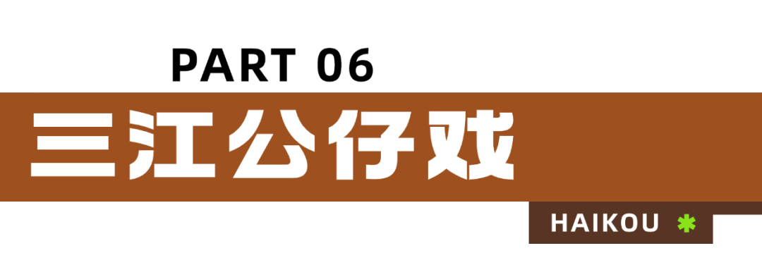 三江公仔戏又称木偶戏,以海南方言、民歌、民间器乐为基础,对历史故事和本地民间故事进行演绎,融合文学、美术、音乐、戏剧等艺术形式于一体。这种极具海南地方特色的传统戏曲表演艺术,早在2008年就被列入了国家级非物质文化遗产保护名录。