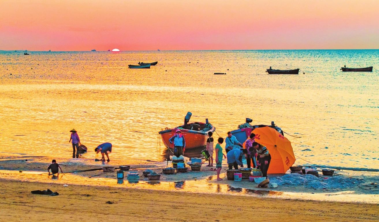 夕阳西下,荣山寮村的渔民满载而归。海口融媒体中心记者 杨忠凯 摄