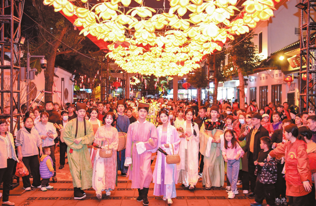 2月12日,海口府城元宵换花艺术周吸引市民游客前来观看。苏弼坤 摄