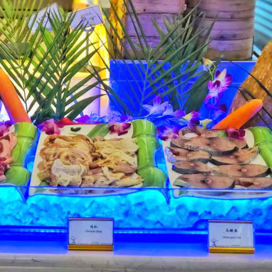 每日现切食材、明火快炒,严选当季美味海鲜,劲道好面、现场炙烤牛排、新鲜现切刺身......日月廊主题自助晚餐菜品丰富多元,每一口都能让食客深切体会到食材的新鲜质感与烹饪的满满诚意。