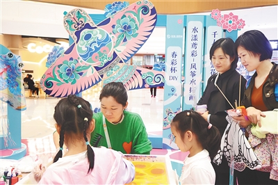 市民在商场体验水漾鸢彩——风筝水拓画。海南日报全媒体记者 王洪旭 实习生 陈龙 摄