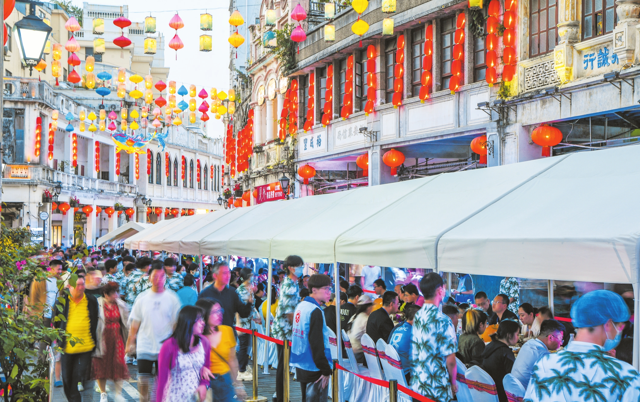 特色长桌宴美食、中英特色歌舞表演……4月13日,作为消博会海南美食文化周系列活动之一,“味蕾无界—宴聚中英”骑楼老街长桌宴之夜在海口骑楼老街举办,近千名中外参展商、各省代表团及市民游客齐聚老街,共享中英美食文化盛宴。