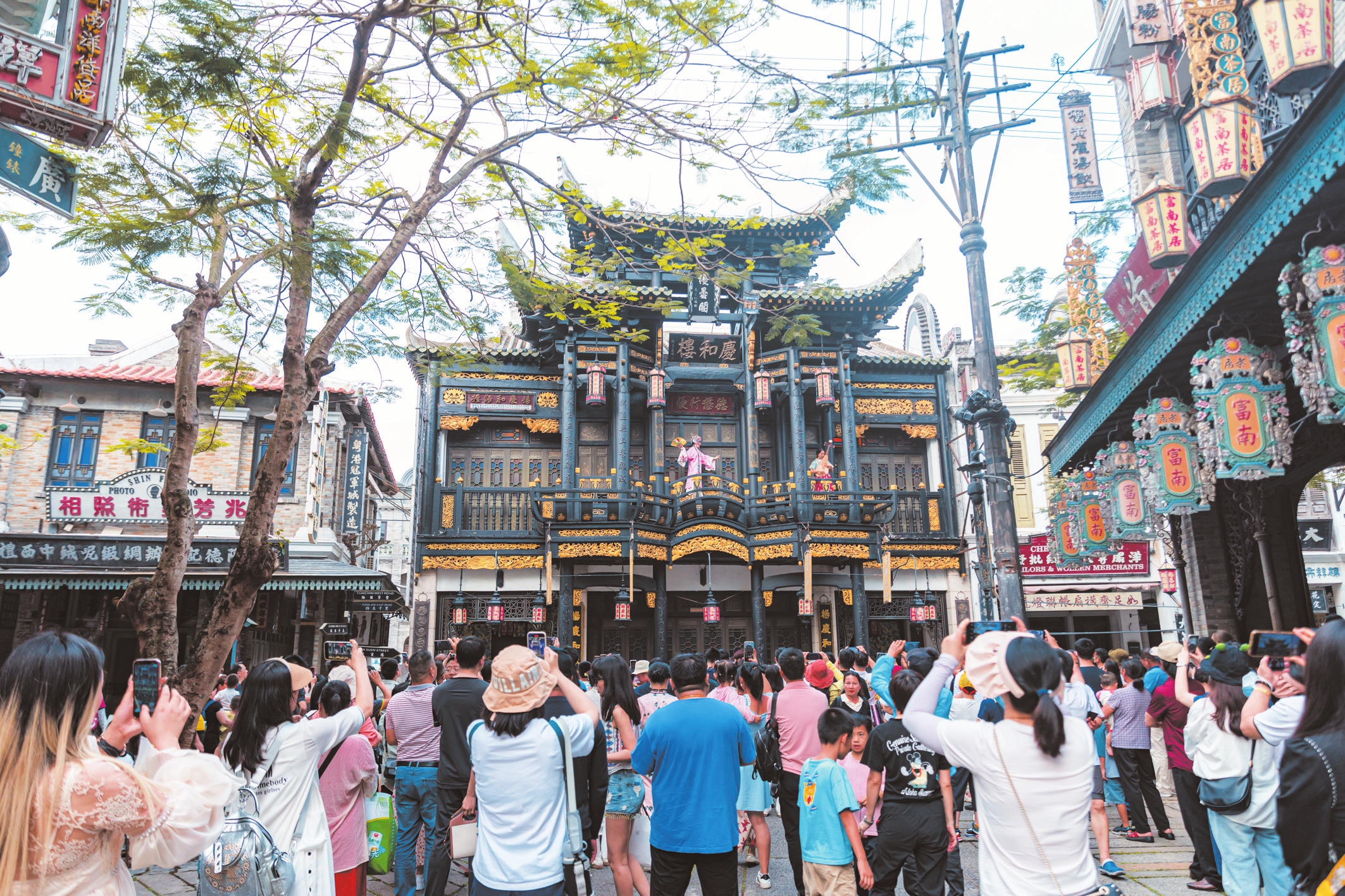 白天欣赏《南洋往事》沉浸式演出,夜晚演绎“夜上海”风情,芳华小院歌声嘹亮,街区美食飘香……“五一”假期,海口观澜湖华谊冯小刚电影公社以“文化场景+消费场景”深度融合,吸引了众多市民游客前往游玩,带动周边酒店、餐饮等业态营收增长。