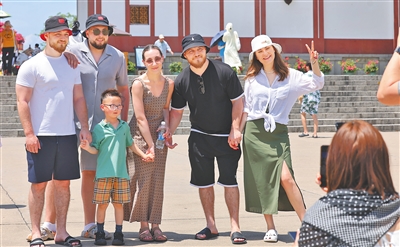 五月十九日,中外游客在三亚南山文化旅游区游玩。