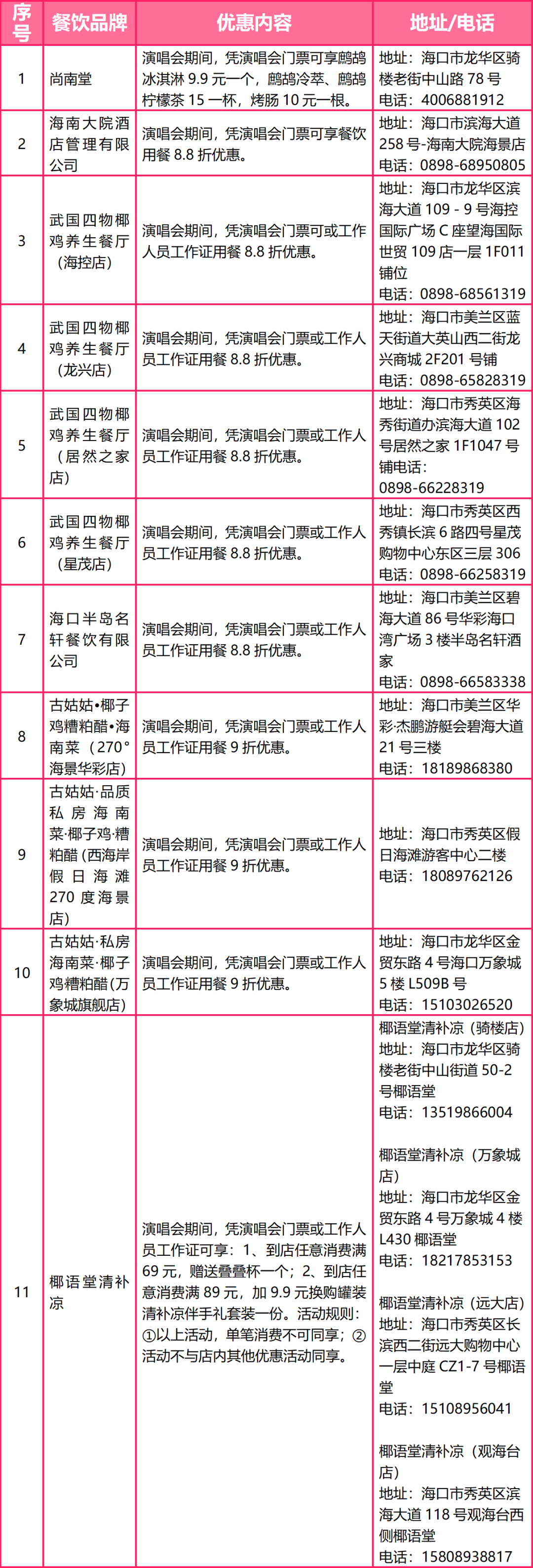 海口各大酒店已贴心为歌迷们准备了免费接驳、优惠折扣、专享礼遇等一系列宠粉福利,让音乐与美梦同步安可!