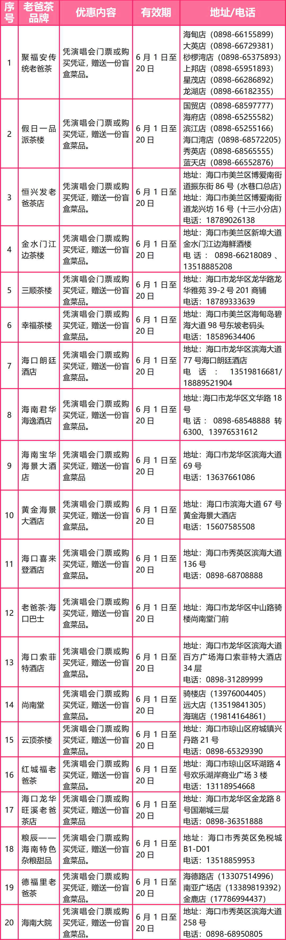 海口老爸茶联盟又来送福利啦!在陈奕迅演唱会期间,凭演唱会门票即可免费享用一份菜品,究竟会是什么呢?需要你亲自到店开盲盒哦~