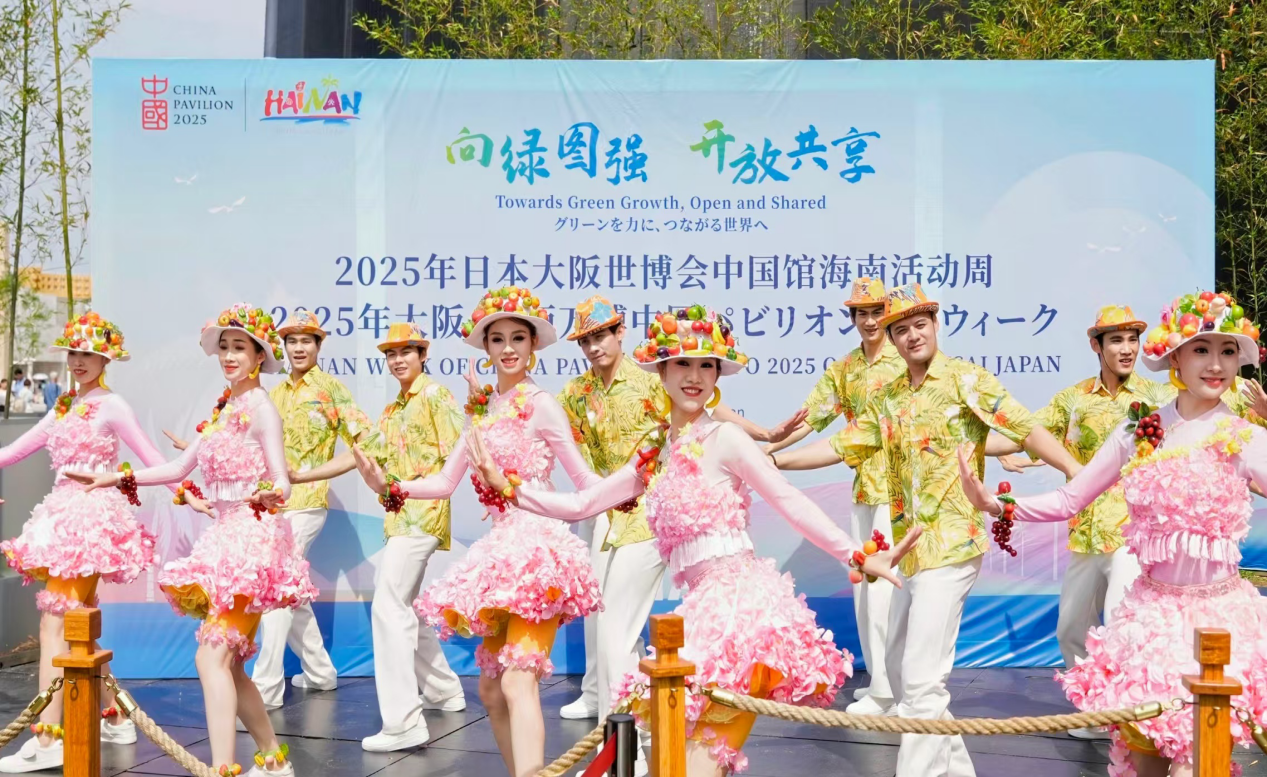 5月23日,2025年大阪世博会中国馆海南活动周,暖场舞蹈《请到天涯海角来》。
