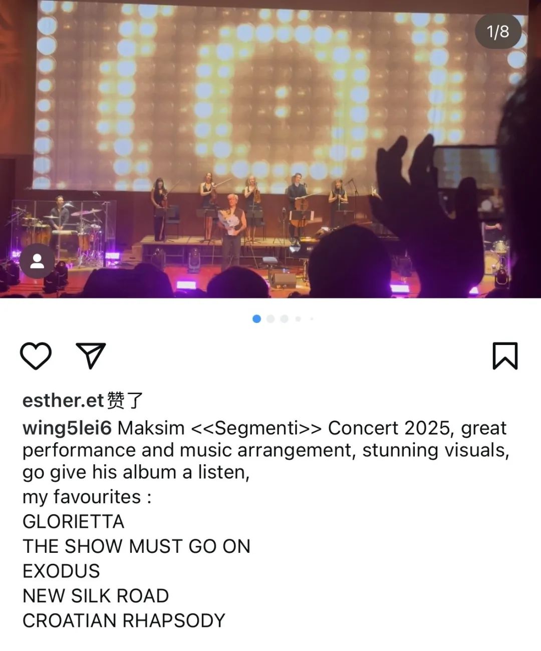 演出落幕时,全场掌声久久不息,马克西姆返场献上经典之作《克罗地亚狂想曲》,将气氛再次推向高潮。