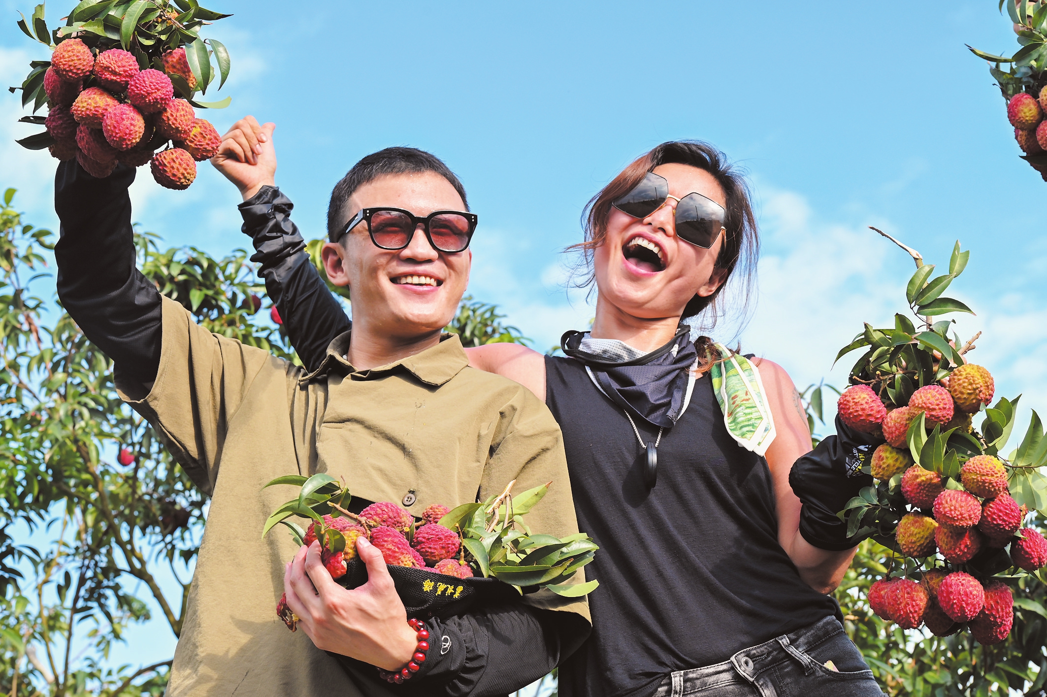 图为摩托车车友在荔枝花海采摘荔枝。 本报记者 陈丽园/文 石中华/图