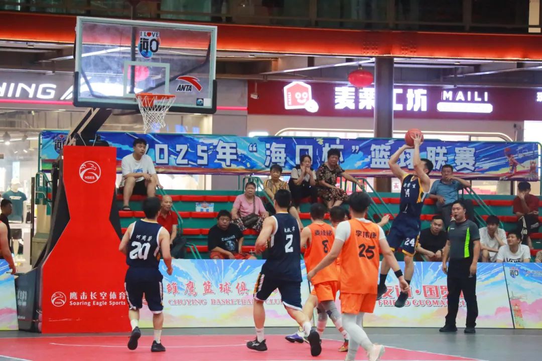 6月16日晚,2025“海口杯”篮球联赛龙华赛区正赛小组赛最后一轮在友谊·国贸城上演,为市民带来一场场精彩的体育盛宴。