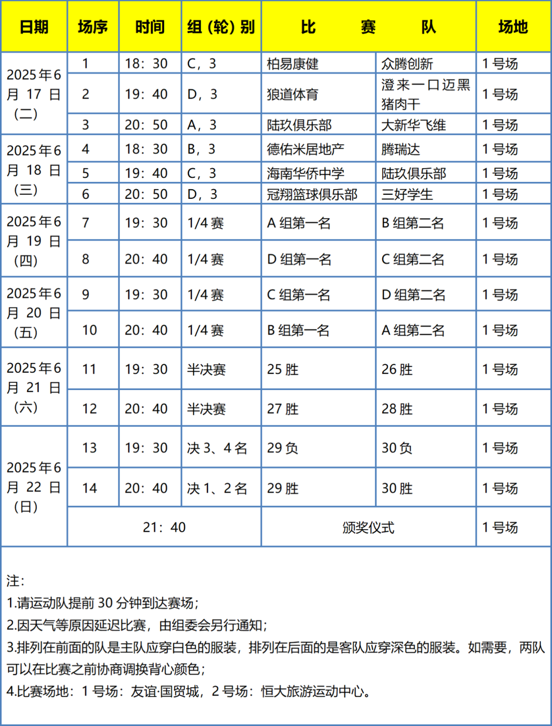 (龙华赛区)正赛赛程表