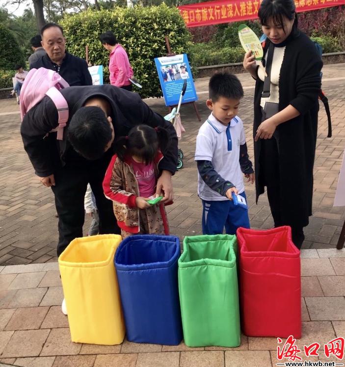 志愿者向游客介绍垃圾分类、文明旅游等知识。曾春怡 摄