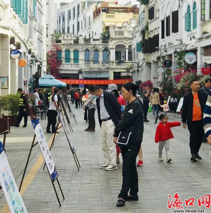 海口网12月3日消息,日前,由海口市旅文局开展的“文明旅游进景区暨专题画展”活动走进海口假日海滩、骑楼老街、白沙门公园,吸引了近千人参观。