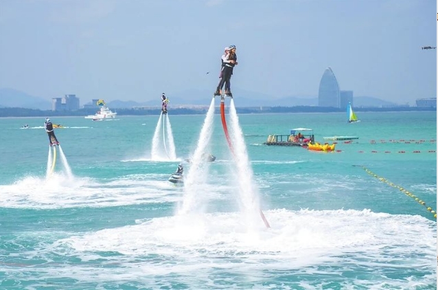 三亚蜈支洲岛风景区,全国各地的游客前来体验海天飞龙等水上项目。海南日报全媒体记者 王程龙 摄