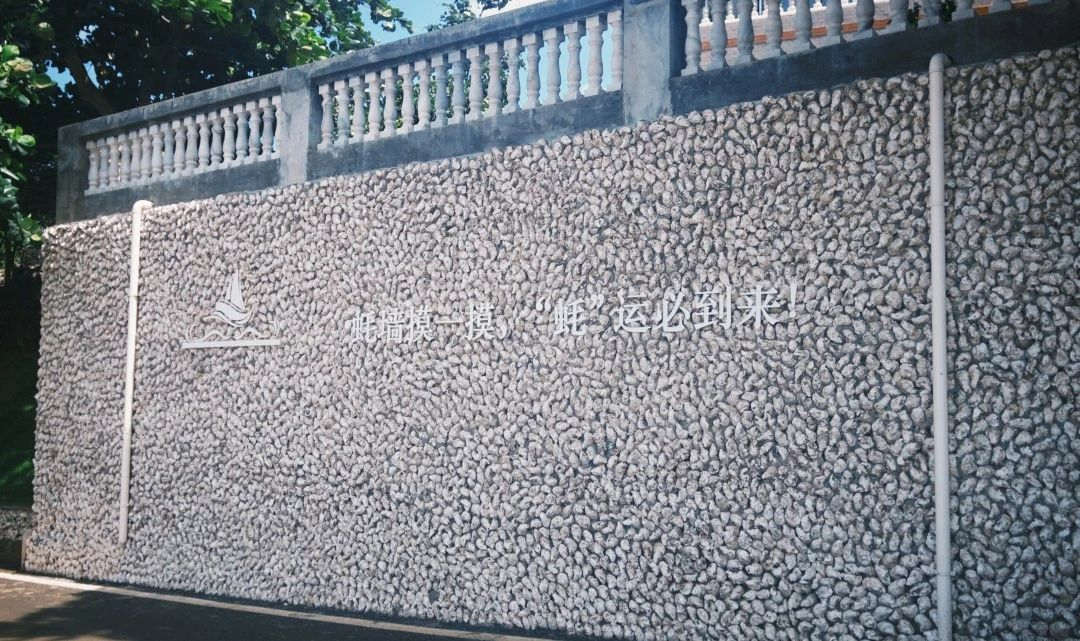 左侧是寓意好运的蚝壳墙