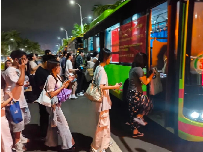 海口公交提醒观演群众,演出活动结束后所有免费公交专线车将原路返回,上车点为五源河体育馆文体中心中路,请留意以防误乘。因场馆周边网约车、出租车数量有限,难以保障快速疏散,建议观演群众优先选择乘坐公交车到达市区,再换乘出租车或网约车至目的地。如有咨询和物品遗落,可拨打12345服务热线或公交客服热线66663066。
