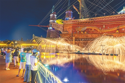 “夜晚的自然风很凉快。来这里既能让孩子脱离室内空调环境,又能看到好看的表演。孩子玩得都不想走。”广西游客思雨说,自己特意买了乐园的夜场票,就是因为知道海口夜间十分凉爽。