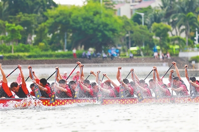 海口美兰:渔村龙舟赛火热开桨