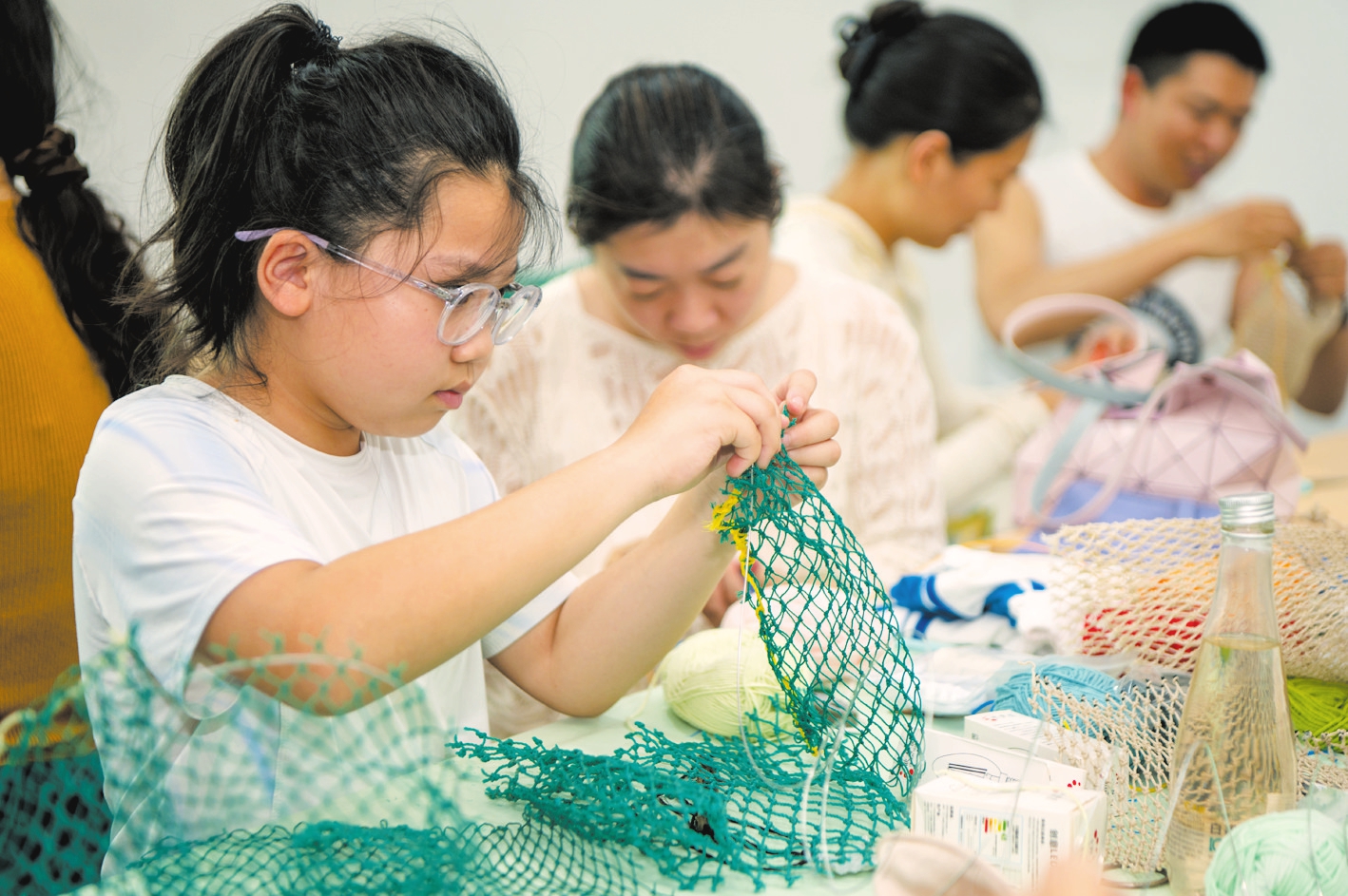 织网体验区内,渔民一边讲述风浪中的打鱼故事,一边手把手教市民游客挑选鱼线,编织专属“渔网兜”,让传统织网技艺成为可触可感的沉浸式体验。