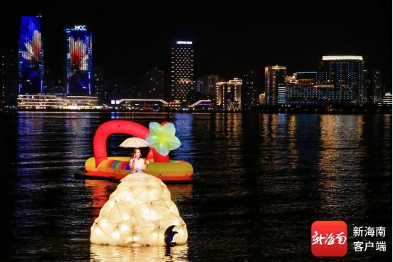 “‘漂浮歌后’空降海平面,嘹亮空灵的女高音划破夜空,让整个海口自在湾余音绕梁,令人回味无穷。”江苏游客孙佳宁直呼,“海口,好City!”