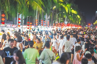 近日,海口市美兰区海大南门夜市迎来客流高峰,成为暑期旅游的热门打卡地。