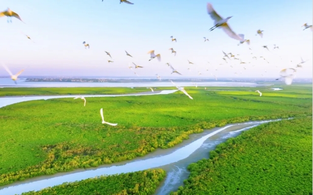 乘船漫游“海上森林”,看白鹭翩跹,感受地球之肺的静谧与神奇。