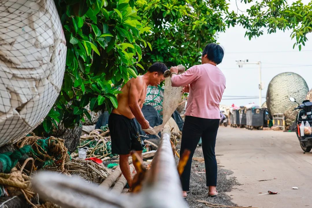 不少参赛的队员在紧张的龙舟训练之外,丝毫不松懈生计的准备。褪去暑热的渔港码头或自家门前,他们会仔细检查、修补即将投入生产的渔网,或是整理着船上必需的绳索浮标。这些看似琐碎的活计,也承载着村子发展的期盼。