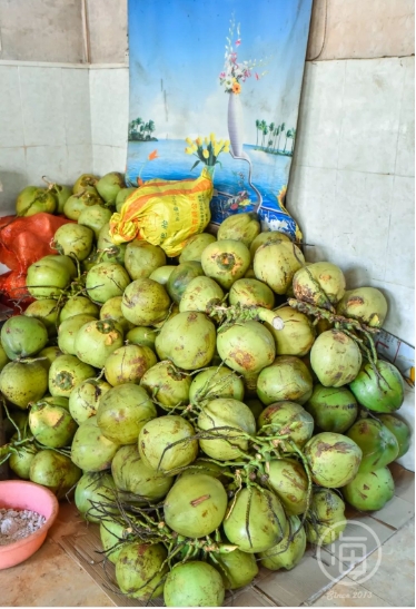 34.海口很多小卖部会摆放椰子,老板会现开椰子水给你喝图片,喝完后记得让老板帮你挖椰子肉。
