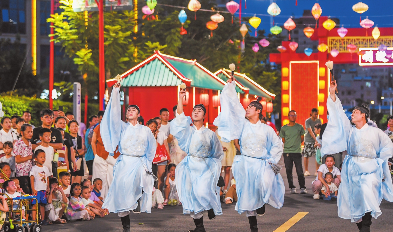 8月12日晚,海瑞文化公园内光影流转,乐声悠扬,《海母教子》《刚峰照世》《大明集礼》《百里送忠介》等限定剧目轮番上演,让市民游客在休闲纳凉之余,沉浸式感受海瑞清正廉洁的精神内涵,解锁独特的夜间文化新体验。