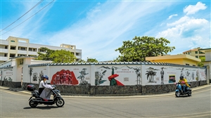 美兰区仲恺村仲恺小学墙体绘制的百米长画传承“红色记忆”。 本报记者 石中华 摄