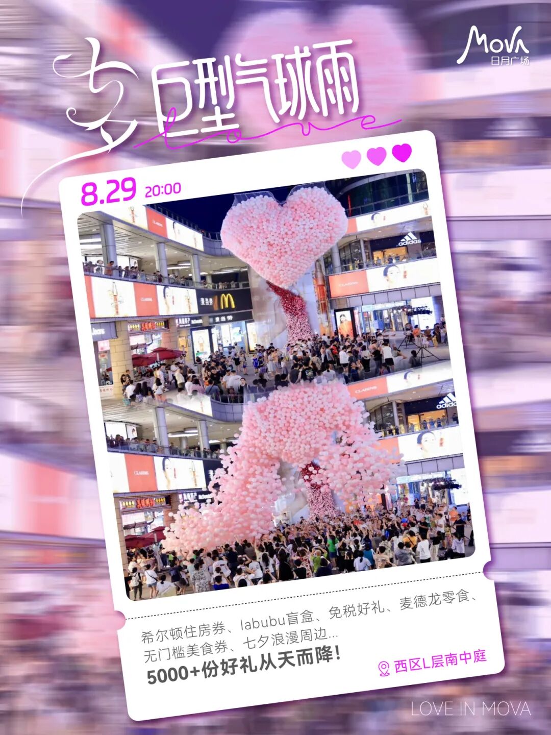 8月29日20:00,将有5000份气球雨裹挟好礼倾泻而下,给你无限浪漫。