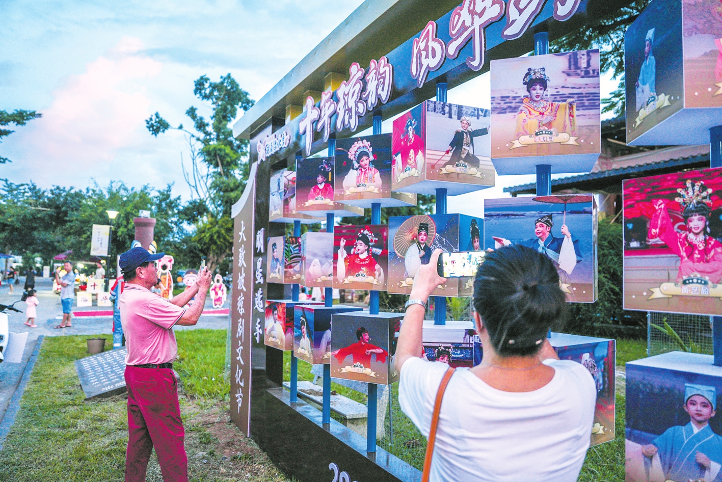 市民在大致坡琼剧文化广场观看琼剧名家图片展。本报记者 杨鹤 摄