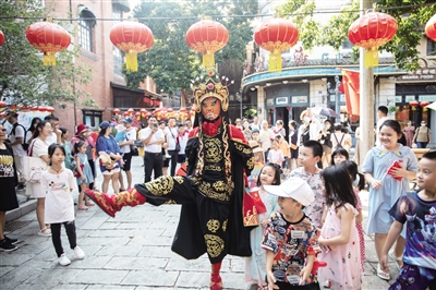 在文化演艺方面,电影公社为游客准备了丰富多彩的体验内容:沉浸式实景演出《武起中华》《茶铺思进》《粤秀四方》等精彩不断,带领观众穿越时空,感受南洋记忆浩瀚尘烟中的传奇;年代剧场演出《再现芳华》在芳华小院中重现电影《芳华》的经典片段,重温文工团那段充满理想和激情的火热岁月;街头非遗展演则呈现川剧变脸、传奇杂技、三弦弹唱等传统技艺,让游客零距离感受中华文化的独特魅力。