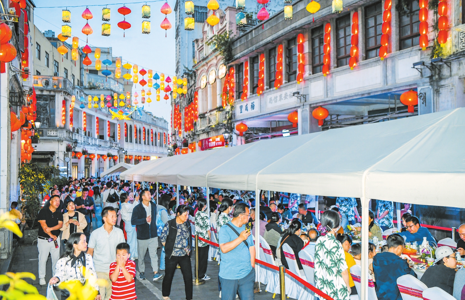 今年4月,作为消博会海南美食文化周系列活动之一,骑楼老街长桌宴活动吸引了众多市民游客前来参与。