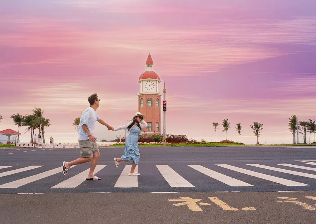 以观海台为背景拍剪影氛围感拉满!拍完晚霞,还可逛逛西海岸沿线驿站,品尝清补凉、咖啡及轻食,感受海口慢生活。