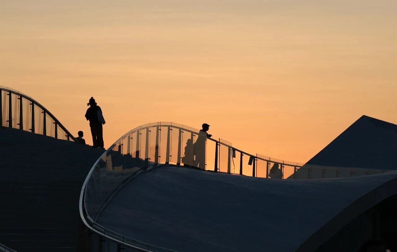 傍晚时分,站在外廊或者透过那些弧形窗框拍照,每张照片都充满未来感,原图直出都高级!