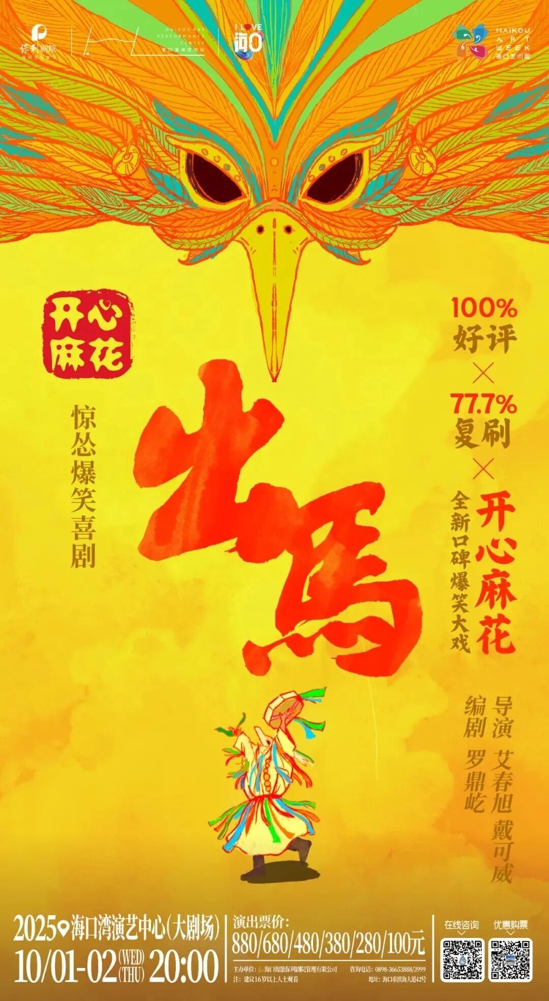 喜爱高雅艺术的观众也有好选择,9月28日,2025海口艺术周已在海口湾演艺中心拉开帷幕。此外,开心麻花爆笑喜剧《出马》、创新多媒体舞剧《罗密欧AI朱丽叶》、经典儿童剧《葫芦兄弟》等多部优质剧目也将在假期轮番登台,满足不同观众观演需求。