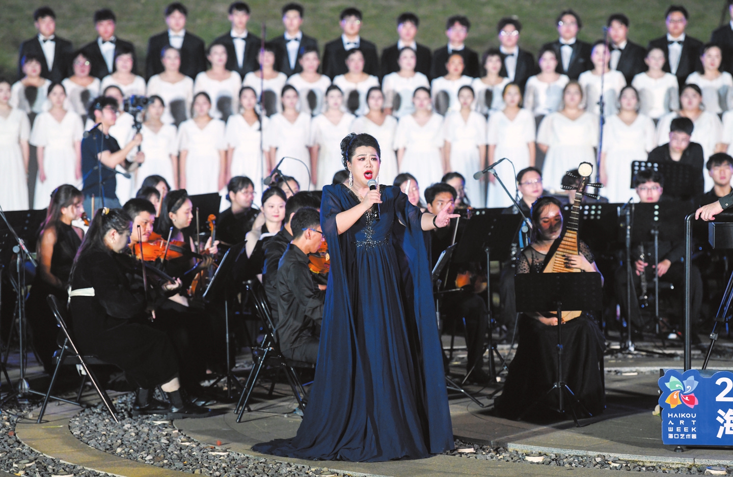 9月30日晚,《黄河大合唱》交响音乐会在海口天空之山驿站精彩上演。