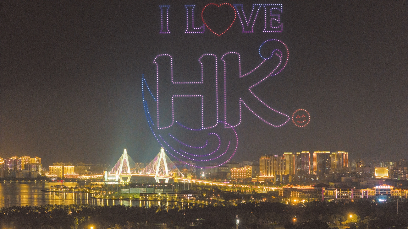 10月8日晚,2025“夸下海口”草坪音乐会迎来又一个歌手主题日。图为无人机组成“I LOVE HK”图案,以此“表白”海口。本报记者 苏弼坤 摄
