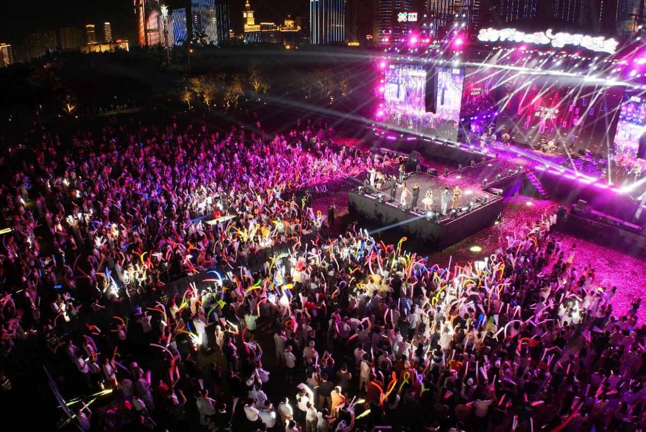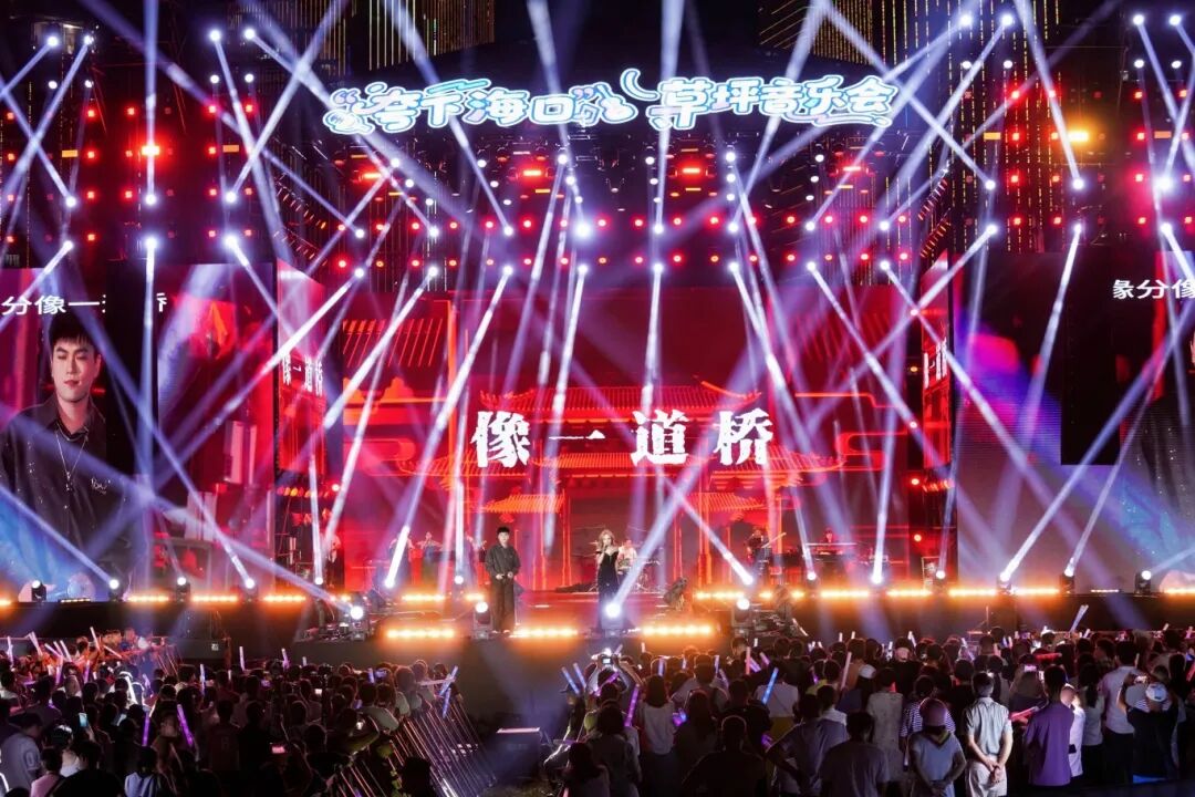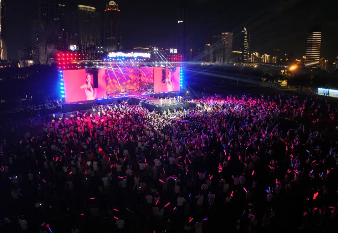 夜幕降临,万绿园的草坪上霓虹闪烁,歌声回荡。歌手们接连献上多首脍炙人口的歌曲,让现场氛围迅速升温。