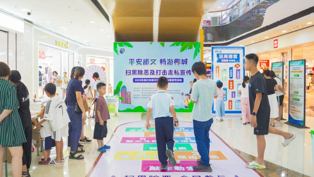 10月8日,“平安旅文 畅游椰城”2025年海口市旅文行业综合治理宣传活动在海口万达广场举行,本次活动以扫黑除恶及打击走私宣传为主题,通过寓教于乐的互动游戏打造法治嘉年华,将综合治理宣传融入市民游客的假日生活,助力营造更安全、有序的旅游文化环境。
